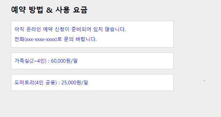 <h2>예약 방법 및 요금</h2>