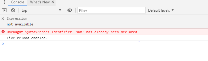- let 예약어를 선언한 변수는 값을 재할당할 수는 있지만 변수를 재선언할 수는 없다.
