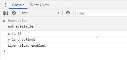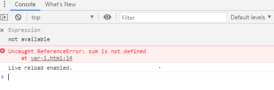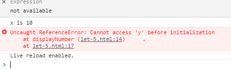 - let 예약어를 사용한 변수는 선언하기 전에 사용할 경우 오류 메시지를 나타낸다.